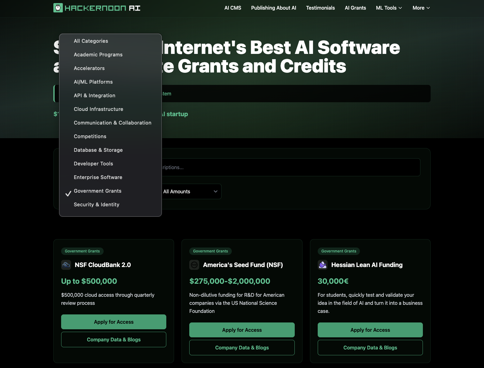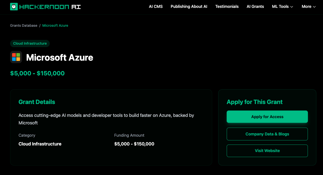 This is the not just AI hallucina-slapping a /startups onto the domain, calling it a job well done and rate limit exceeded; this is the HackerNoon team curating the most direct 3rd party link to apply for the credits that we could find and verify at the time of publication. We intend to update as we go. The secondary button of "Company Data & Blogs" links to more free HackerNoon resources about the company, their business data and blogs (ex NVIDIA, IBM, and so on).